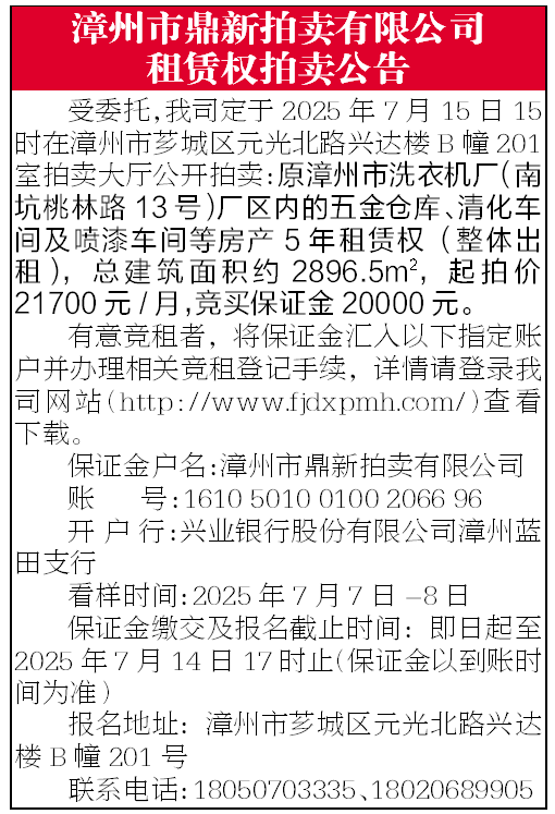 漳州市鼎新拍賣(mài)有限公司 版權(quán)所有 閩ICP備14003855號(hào)-2